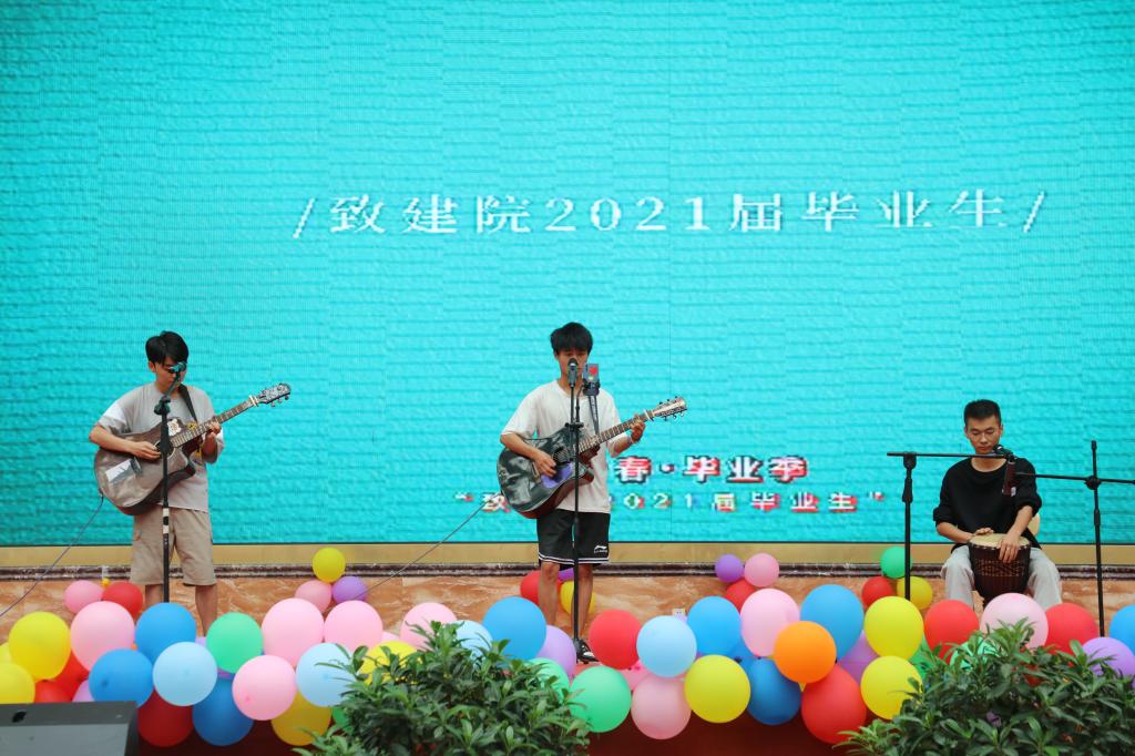 随后,精彩的文艺演出在建经系选送的《筑梦新时代》表演中拉开帷幕,学子们精湛的演技赢得了观众不断的掌声和欢呼声。由交通工程系选送的《岁月永恒》演出中,演员们通过手鼓、吉它弹唱的形式,回忆了在母校三年的点滴,临别之际,用歌声表达了对母校的感恩和对校园每个角落的不舍。由2018级辅导员代表带来的歌曲《想把我唱给你听》,优美的旋律和青春的碰撞,把演出推向了高潮,观众纷纷拿出手机给自己的老师留下最美瞬间,掌声欢呼声经久不息。