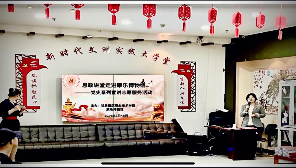 中华民族一家亲,同心共筑中国梦。在中国共产党成立100周年来临之际,为有效推动我院百年系列党史宣讲活动,有效推动民族团结进步工作,2021年6月18日下午,甘肃建筑职业技术学院思政部联合康乐县博物馆开展了以“民族团结邻里亲 党史学习忆初心”为主题的党史教育活动,得到了广大师生和群众的热烈反响。参加本次活动的有学院思政部部长王瑛、思政部教师杨玉荣、康乐县博物馆馆长马正芳,博物馆讲解员、学院教师、学生代表。