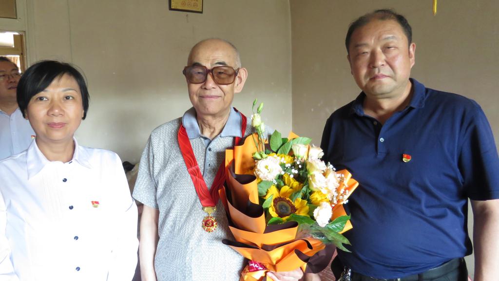 党荣国老人听说学院领导要来慰问,专门换了一件新衬衣迎候。来到家中,王娟丽同志为党荣国佩戴了中共中央颁发的“光荣在党50年纪念章”,并送上了鲜花祝福。党荣国老人激动的握着王娟丽同志和王继伟同志的手,饱含深情地讲到,感谢组织关怀,感谢学院领导关心。并给前来慰问的一行人员讲述自己于1949年入党,1991年离休,今年91周岁,已有72年的党龄,经历了国家发展的不易,见证了共产党百年成就的辉煌。看到老人虽年事已高,但精神抖擞、思路清晰、家庭和睦,慰问人员很是欣慰。王娟丽同志说,广大老党员为党和人民的事业做出过积极贡献,是党和人民的宝贵财富,组织部门要更加关心关注老党员的生活,真心实意为他们办实事、解难事、做好事,让老党员安享晚年。并详细询问老人家的身体状况等情况,祝福党荣国及其家人健康长寿。