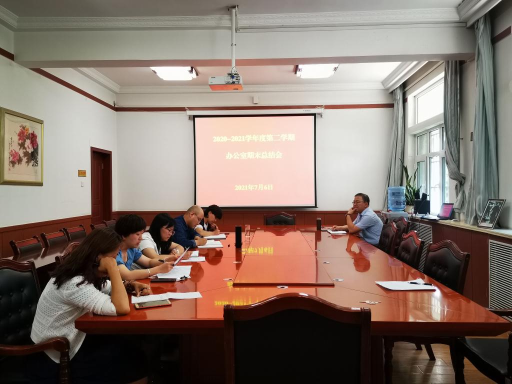 7月6日,学院办公室在第二会议室召开了上半年期末总结会议,学院党委委员、组织人事处处长、办公室主任张长颖、办公室副主任吴明萍和全体办公室工作人员参加会议,会议由副主任吴明萍主持。