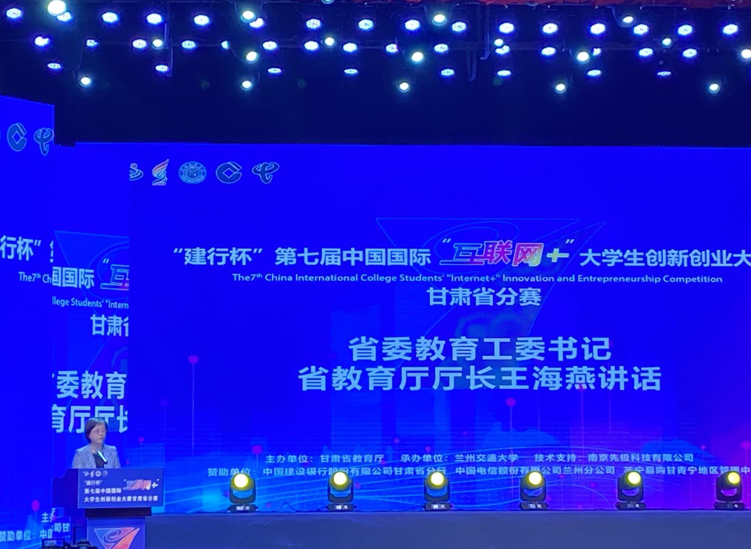 7月24-26日由甘肃省教育厅举办的第七届中国国际“互联网+”大学生创新创业大赛甘肃省决赛的闭幕式在兰州交通大学礼堂举行,闭幕式上省委教育工委书记、省教育厅厅长王海燕,省委教育工委专职副书记、省教育厅党组成员张晓东、省教育厅相关处室负责同志、专家评委代表以及全省各高校的校领导、双创教育负责人、参赛项目团队师生代表共900余人参加现场仪式,我院学院党委委员张长颖代表学院参加此次活动。全省9万余名师生在线收看了仪式直播。