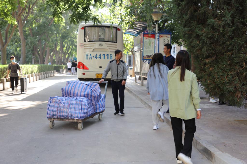 当日上午,学院工作人员在兰州西客站、兰州火车站、汽车东站、汽车南站、汽车客运中心,负责返校学生的接站工作。根据学院防疫领导小组办公室的安排,由接站人员核验学生48小时内核酸检测阴性证明,甘肃省健康出行码以及国务院通信大数据行程卡,并测量体温。之后登记到站学生信息,消杀学生所带行李物品,带领学生到指定地点乘车前往本部校区。