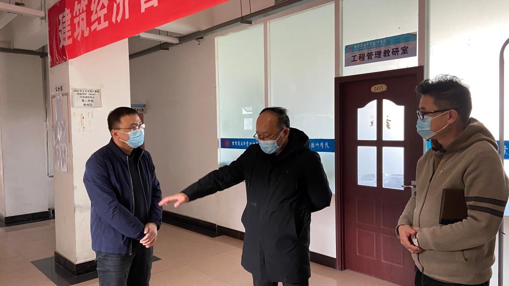 在保卫处,贺建伟同志检查了安全应急机制运转、校园封闭管理措施、校内临时隔离点等工作情况,对可能出现问题的隐患点进行摸排和工作指导。他强调,要进一步增强大局意识,紧密结合保卫处工作实际,充分发挥各项安全保卫职能,全力管好自己的大门,努力维护校园安全平安,为兰州市的疫情防控作出我们应有的贡献。同时,贺建伟同志还详细询问了解值班人员值守情况、防控措施落实情况以及目前存在的困难和问题,叮嘱大家在冬季流感普遍流行和当前疫情防控繁忙工作叠加的特殊时期,要注意自身保暖和个人卫生,严防感冒,做好自我防护,为确保疫情防控取得最终胜利继续努力工作。