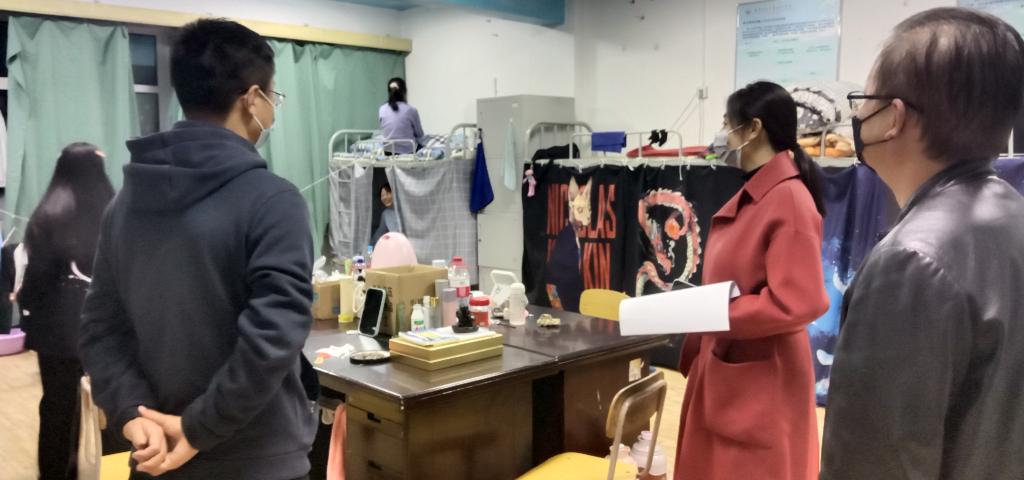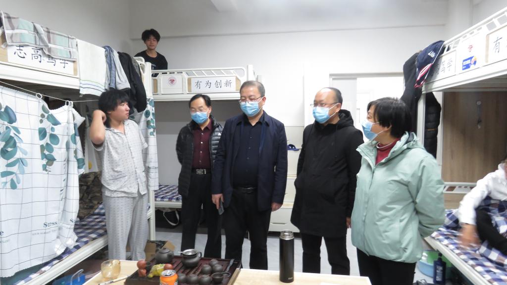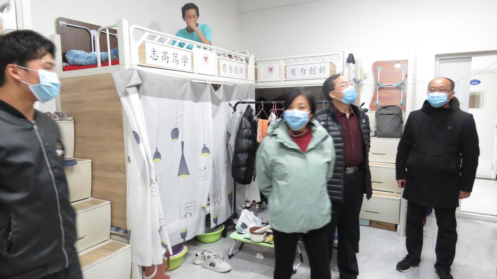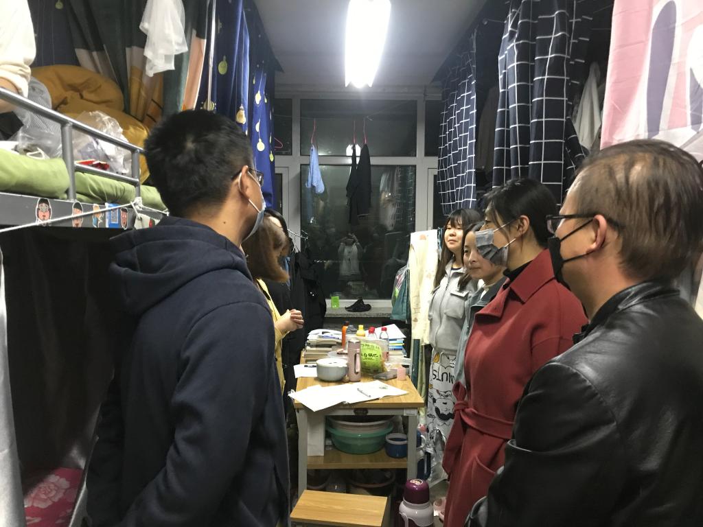 当日晚间,由学院党委书记、院长王娟丽,党委委员、纪委书记、监察专员贺建伟,党委委员、副院长高忠有,党委委员、组织人事处处长张长颖一等来到学生宿舍5号楼。领导们一行查看了宿舍门卫登记记录,询问了相关工作人员进出记录的登记。来到203宿舍,领导们详细地询问了疫情期间学生们的思想动态,在生活和学习上遇到的困难和问题。叮嘱大家注意寝室卫生、安全用电、强化安全意识,鼓励同学们之间要相互理解,相互包容,努力营造一个安全、卫生、文明、和谐的宿舍环境。希望大家把握这难得的大学时光和机遇,充分地利用有限的学习时间,增强自身的专业知识,为自己的将来打下坚实的基础。