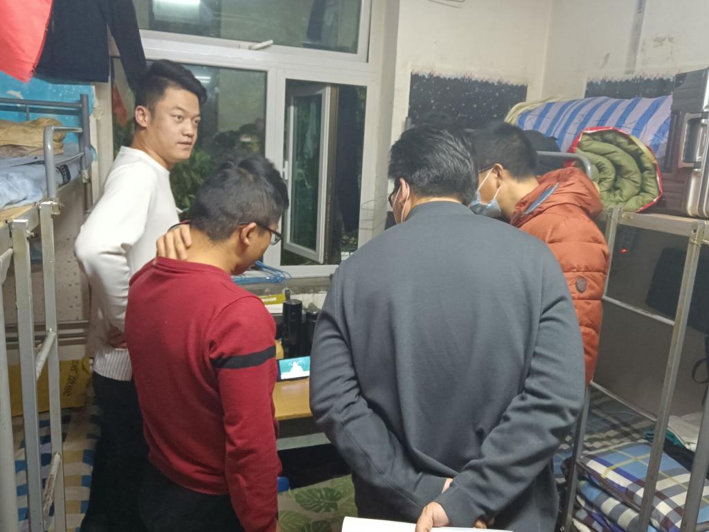 为维护校园安全稳定大局,结合学院现阶段疫情防控工作实际,10月31日晚,甘肃建院疫情防控领导小组分三组分别进学生宿舍,开展安全隐患摸排,积极开展心理疏导、政策解读等工作。