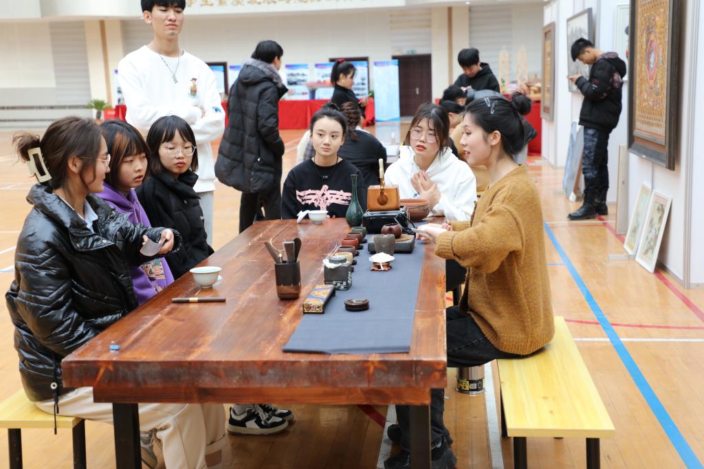 为贯彻落实十九届六中全会精神,推进职业教育提质培优行动计划,提升职业教育增值赋能,深化我院“非遗”文化落地生根,“大国工匠”精神传承创新,12月6日,建筑系第二届文化艺术建造节在我院体院馆2楼成功举办。此次活动主要展示了建筑系师生一年以来,在教育教学方面所获得的丰硕成果。活动现场举行了茶艺、花艺、掐丝珐琅展演,现场教学体验活动,为全校师生奉上了一场视觉饕餮盛宴。