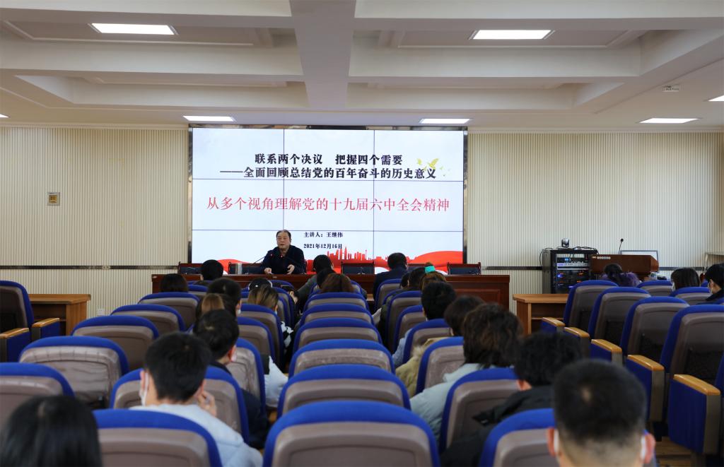 “联系两个决议 把握四个需要,全面回顾总结党的百年奋斗的历史意义”——学院党委副书记王继伟作十九届六中全会精神学习专题讲座