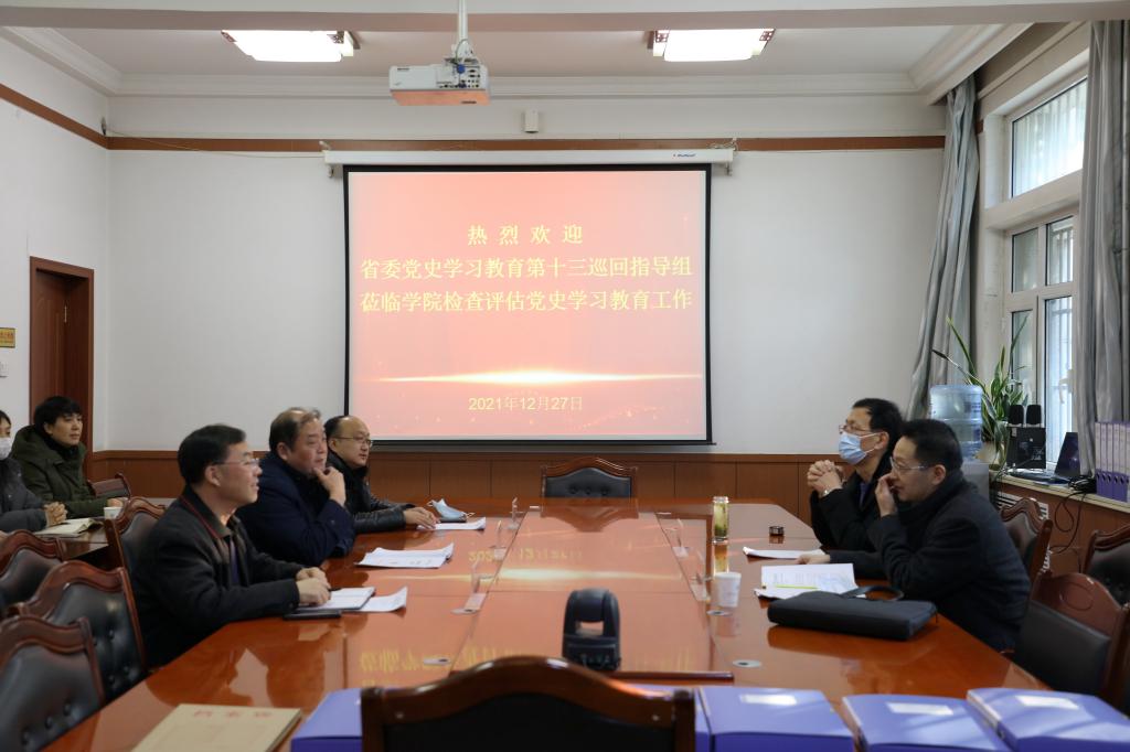 12月27日,省委党史学习教育第十三巡回指导组成员王雄堂、张彦荣一行莅临学院,对学院党史学习教育开展情况进行了检查评估。学院党委副书记王继伟,党委委员、纪委书记、监察专员贺建伟,党委委员、副院长高忠有,各党总支书记及相关人员陪同检查。