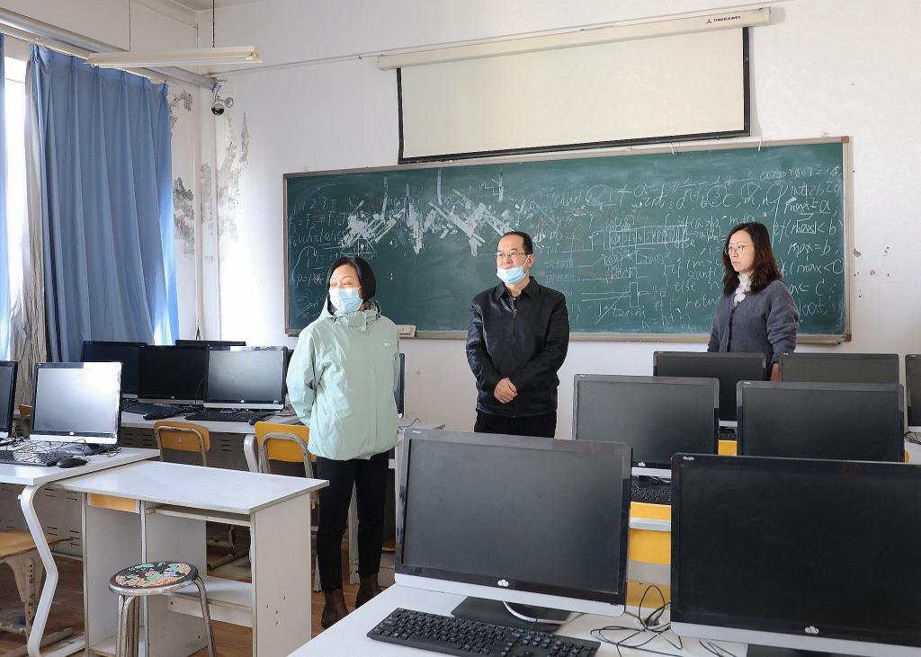 随后,领导一行走访了六个教学系部和相关部门,详细询问了各系部开学前的准备工作。并要求各系要严格执行学院相关疫情防控政策的要求,准确掌握各系教师和学生的出行轨迹和健康状况,做好学生返校的组织工作;对于暂不能返校的学生,要合理安排并开展相关的线上教学和指导。此外,王娟丽同志指出要关注学院重点教学区域、机房等地方存在的卫生和消防安全问题。