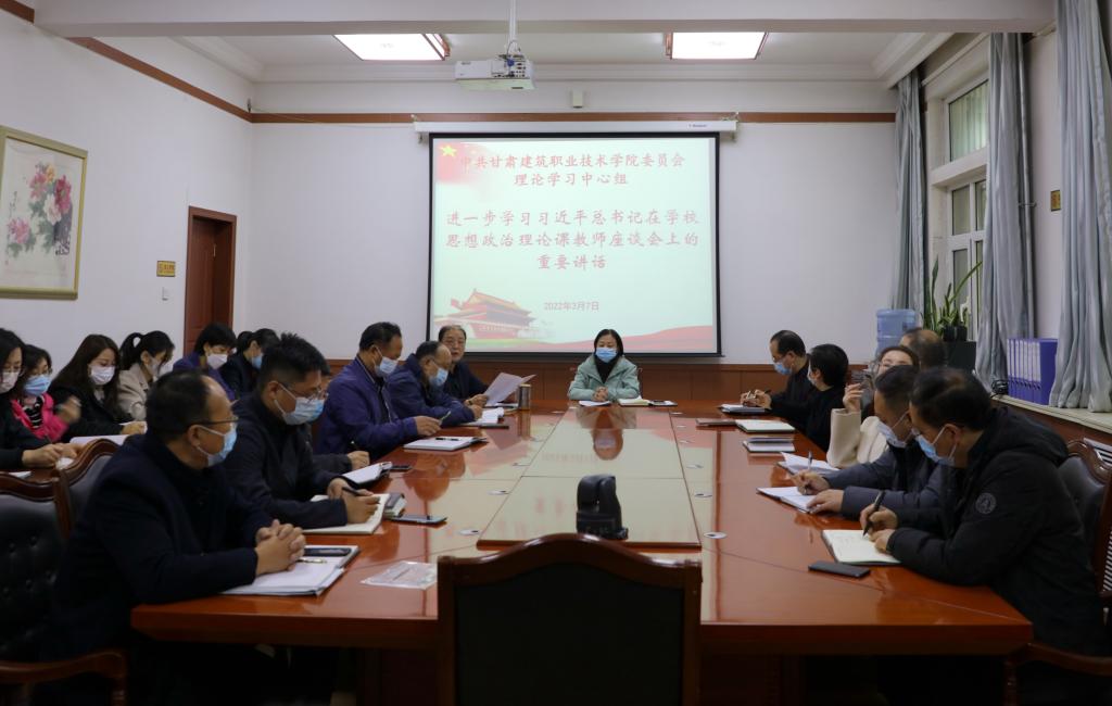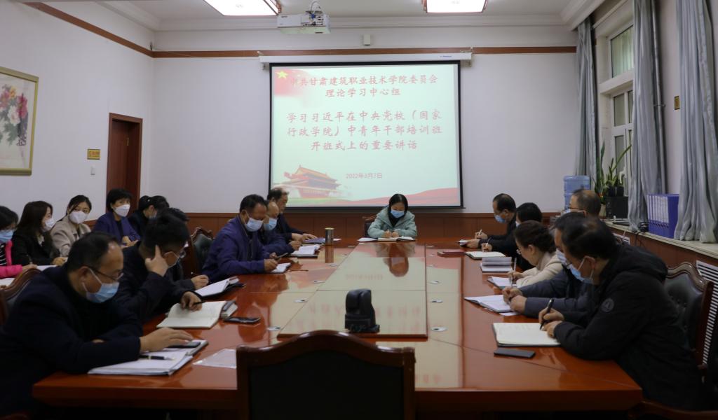 3月7日,甘肃建筑职业技术学院党委理论学习中心组召开专题学习会议和疫情防控专题工作会议。党委书记、院长王娟丽及领导班子、中心组全体成员参加了会议。党委副书记王继伟主持。