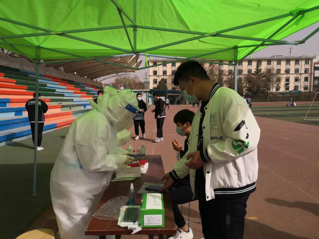 3月14日上午,兰州校区全体师生进行核酸检测工作,在各系留守老师和自律会学生的引导下,核酸检测现场排队的师生们保持一米线距离,严格遵守疫情防控政策,做完检测后的学生由学生干部有序地自行带回。