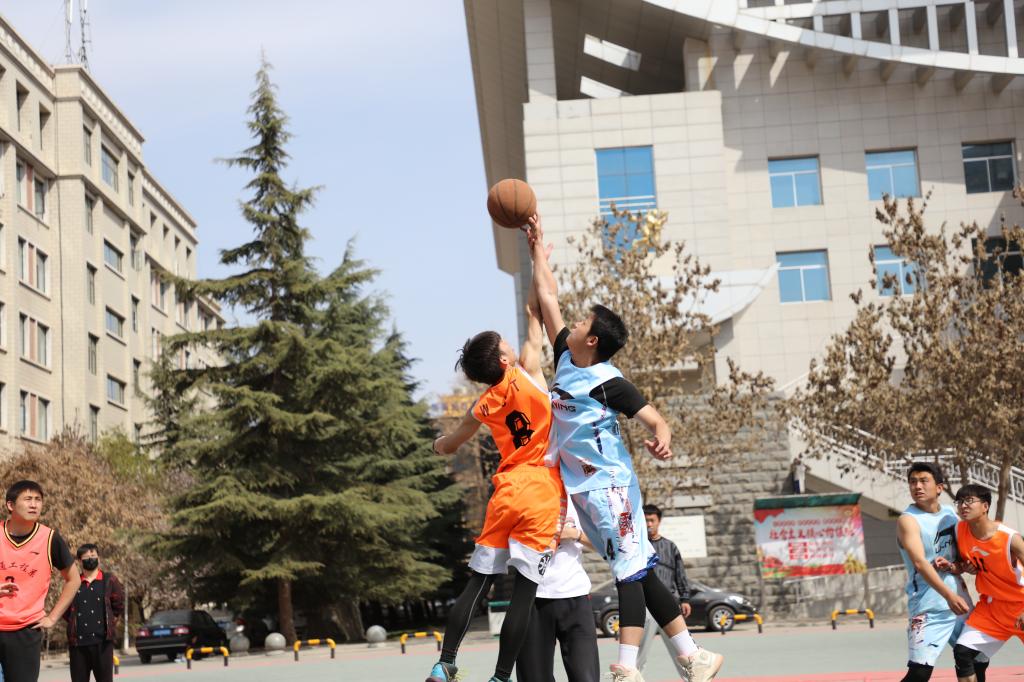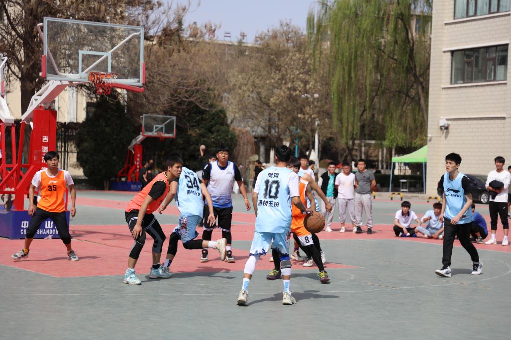 4月4日下午,春意昂然、阳光明媚,甘肃建筑职业技术学院“战疫杯”篮球比赛如火如荼地进行,交通系道桥5班、焊接1班、铁道2班、汽修2班正激烈的进行着争夺“冠军”的比赛,这是交通系11个班级为期9天时间的“较量”。赛场上,只见双方队员眼中紧紧盯着裁判手中的篮球,裁判将手中的篮球抛向空中,队员猛地起跳,将球拍向对方的场地投向篮板。临近篮下,守候多时的队员将手中的球传到早已就位的队友手中,队友纵身一跃,咚的一声,球进了,场上一片掌声,助威加油的同学欢呼雀跃。