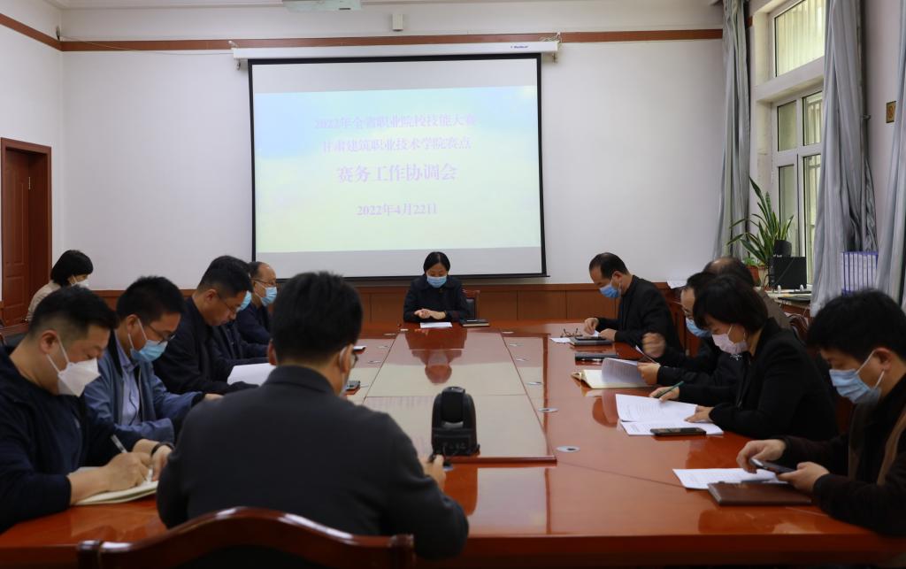 4月22日,甘肃建筑职业技术学院召开2022年全省职业院校技能大赛工作协调会。大赛赛点执委会主任、学院党委书记、院长王娟丽及相关领导参加协调会。