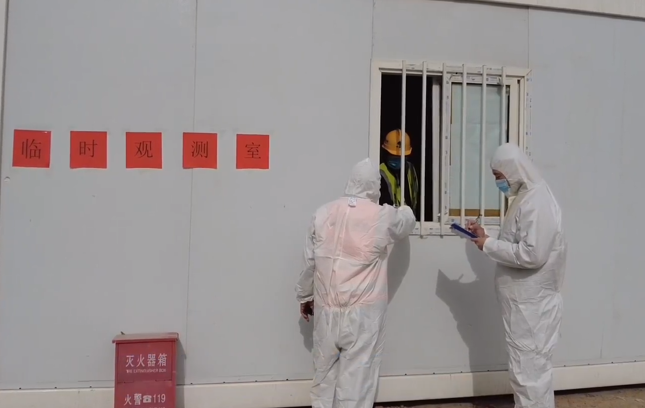 事发原因是一位施工人员上班例行检查时核验体温为37.5度,门卫工作人员立即向项目部通知,项目部人员执行快速反应启动应急预案,迅速赶到现场进行一人一档登记后,将该工人进行紧急隔离,并在隔离室周围拉起了警戒线,随即对施工现场进行全面消杀,同时向街道办相关人员报告,街道办人员立即汇报疾控中心并联系救护车赶赴项目现场,体温异常人员被带走集中隔离。此次疫情防控应急演练井井有条,有序不紊,对后期的疫情防控工作奠定了良好的基础。