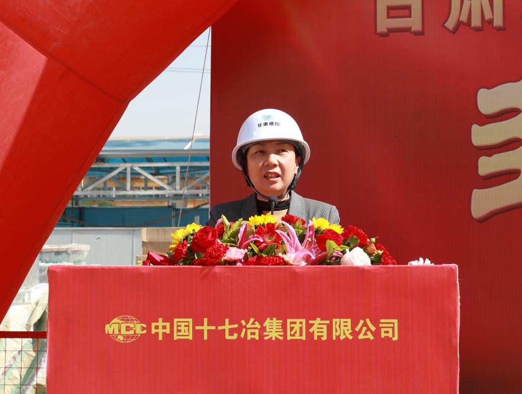 仪式上,王娟丽同志对到场参加仪式的各位领导、各位朋友表示了最热烈的欢迎,向日夜奋战在项目建设工地的全体建设者致以崇高的敬意和诚挚的问候。并讲到,自项目开工以来,各方人员克服重重困难,尤其是当前疫情防控的特殊时期,项目部管理人员吃住在现场,各施工班组全力以赴,以高速度、高标准、高质量完成了主体结构的施工任务。王娟丽同志代表甘肃建院全体师生,向七里河晏家坪街道领导的关心和支持,中国十七冶建设集团全力以赴的精心施工,甘肃经纬建设监理咨询有限责任公司全过程的跟踪监督,以及所有建设的参与者们表达了感谢。并指出,主体结构封顶代表阶段性胜利,希望参建各方在今后的工作中继续保持建设者的激情和奋斗宗旨,以主体结构封顶为新的起点,继续发扬团结合作、锐意进取的精神,确保工程安全与质量并重。