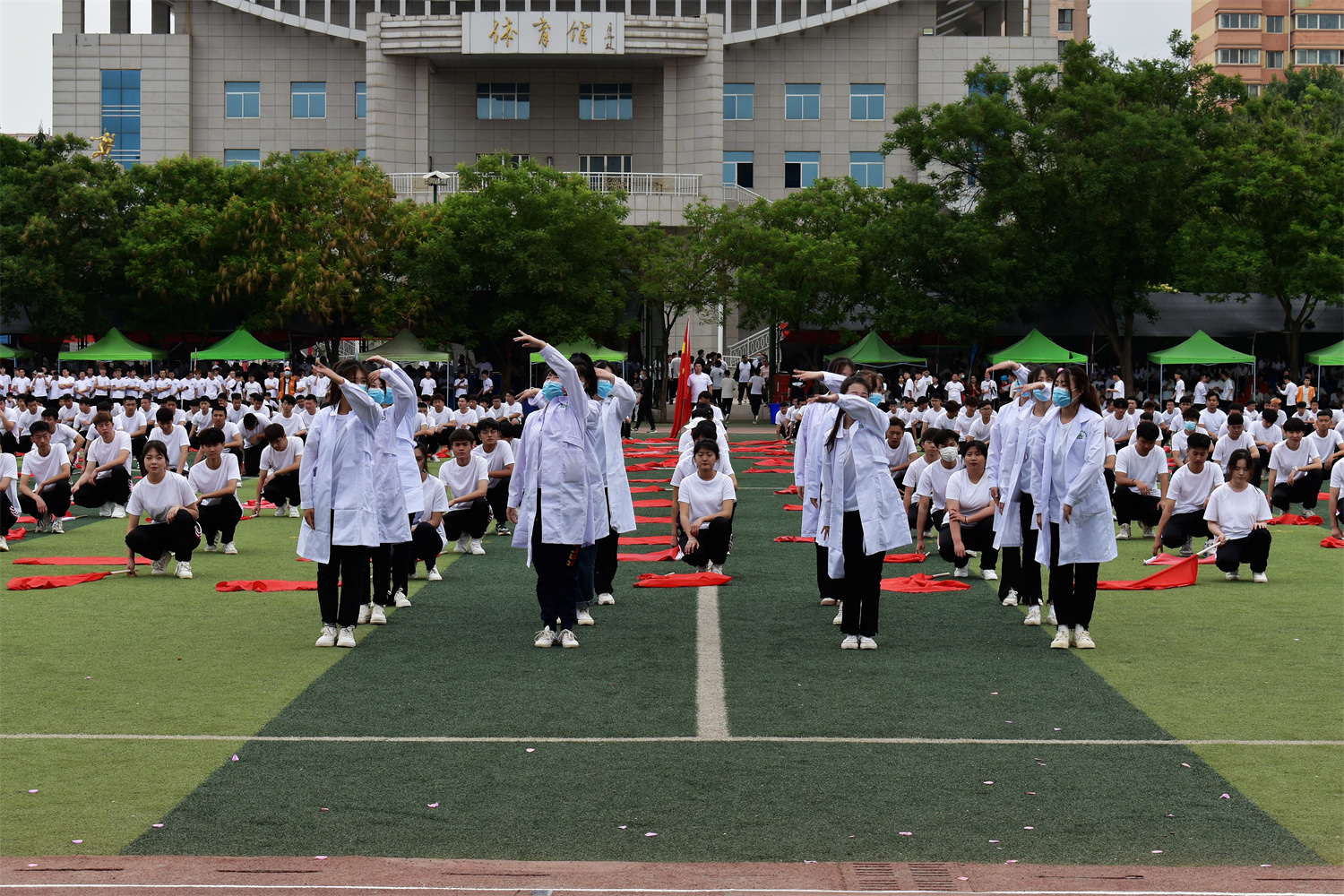 龙、狮、鼓表演伴随着激越的鼓点和恢宏的气势将现场的气氛点燃;由学院“非遗”传承客座教授和非遗传承人,田野、司马和曙老师带来的《花儿串烧》高昂激荡、余音缭绕。团体操舞蹈和红旗方阵描绘了在新冠肺炎疫情中学院师生和广大医护人员不畏艰难、奋勇向前的精神。