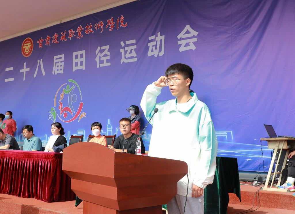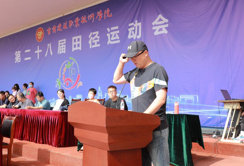 王娟丽同志宣布甘肃建筑职业技术学院第28届田径运动会开幕,并致开幕词。首先向本届运动会的召开表示热烈的祝贺,向积极参与本届运动会的全体工作人员致以诚挚的问候和衷心的感谢。并指出在经历了两次疫情考验之后,学院的操场上到处彩旗飘扬、欢声笑语,正是由于全体老师无私奉献、默默坚守,和同学们齐心协力、遵守学院的疫情防控规定,才能迎来学院“疫去春来”的生动场面,才能在夏日的朝阳里尽情奔跑。为了组织好这次运动会,各系部、全体服务人员都付出了辛苦的努力。此外,王娟丽同志还谈到,每年一度的运动会是建院学子坚持突破自我、磨炼坚韧品格、展现自己风采的难得机遇,在赛场上面对困难奋力拼搏,面对挑战勇于前行的运动健儿正是青春和活力的体现。也正是这个原因,每年一度的运动会更是学院贯彻习近平总书记重要讲话精神,加强学校体育工作的生动实践。希望同学们以召开运动会为契机,走出宿舍、走上跑道、走进操场,发扬“更快、更高、更强、更团结”的奥林匹克精神,在体育锻炼中享受快乐、强健体魄、锤炼意志、塑造品格,真正成为全面发展的社会主义建设者和接班人。并预祝全体运动员取得优异成绩和本届运动会圆满成功!