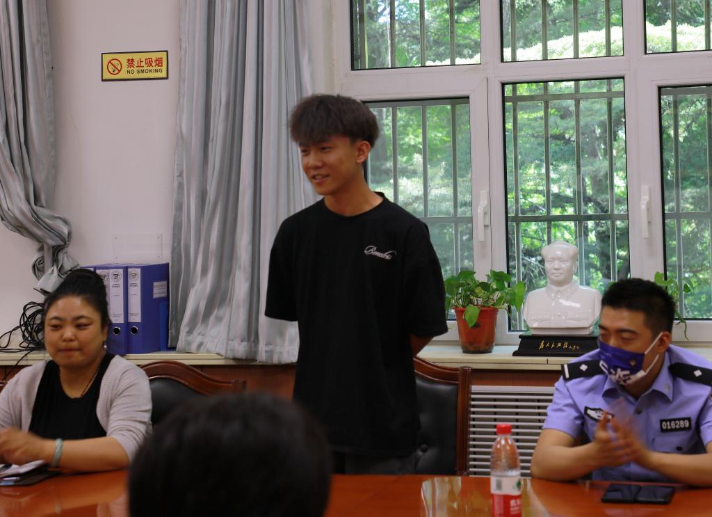 王娟丽同志讲到,本次锦旗赠送仪式不仅是对个人的表彰,更是要在校园中弘扬一种正能量和风气,在校园中大力宣传能够帮助学生更好的树立正确的人生观,具有十分重要的意义。事情发生后,刘润森同学在利益的诱惑面前毫不犹豫的做出了正确的选择,积极配合各方工作,同时在处理事件的过程中表现出了优秀的法律意识和防范意识,真正做到了在思想上成熟,在人生观上正确,为其他学生树立了良好的榜样,并希望今后能够继续保持,不断努力前进。