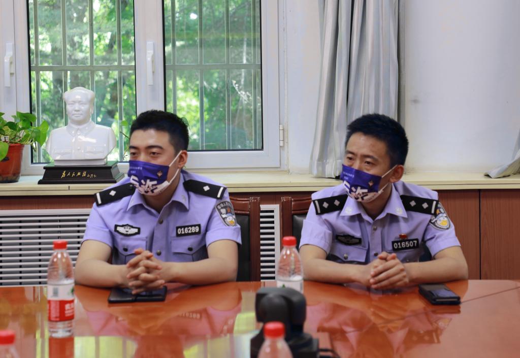 随后,王娟丽同志与姚警官向刘润森赠送了锦旗,并送上了学院的表扬信。