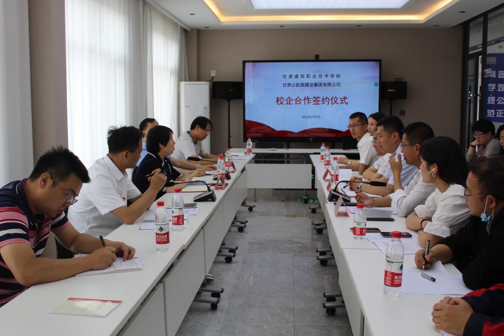 6月9日,为喜迎党的二十大胜利召开,深入贯彻落实党中央、国务院关于高校毕业生就业工作的决策部署,推深做实“书记校长访企拓岗促就业”专项行动,充分发挥党建引领作用,探索校企党建共建新模式,甘肃建筑职业技术学院与甘肃公航旅建设集团有限公司联合开展党建共建活动暨学生实习实训暨就业基地揭牌仪式,甘肃建筑职业技术学院党委委员、副院长许洁、高忠有,公航旅建设集团财务总监曾明禹出席活动,校企双方相关部门负责人及甘肃建筑职业技术学院机关第五党支部、交通工程系党总支党员代表参加了本次活动。