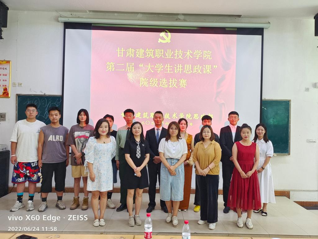 根据省委宣传部、省委教育工委举办“第二届全省高校大学生讲思政课公开课展示活动”的文件精神,6月20日、24日分别在康乐校区和兰州本部成功举办以“青春献礼二十大 强国有我新征程”为主题的学院第二届“大学生讲思政课公开课展示活动”院级选拔赛,思政部全体教师参与了此次活动。