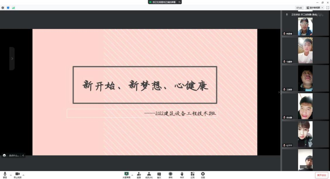 近期,《新开始,新梦想,心健康》主题班会在各系举办,2022建筑设备工程技术1班、2班同学,制定明确的目标和计划,写下自己的愿望和梦想。2022工程测量技术1-6班的同学倾听讲座,积极发言,每一个同学都是值得被关注和关爱的个体,保持良好的心理健康才能更好的适应环境,不断提升自己。