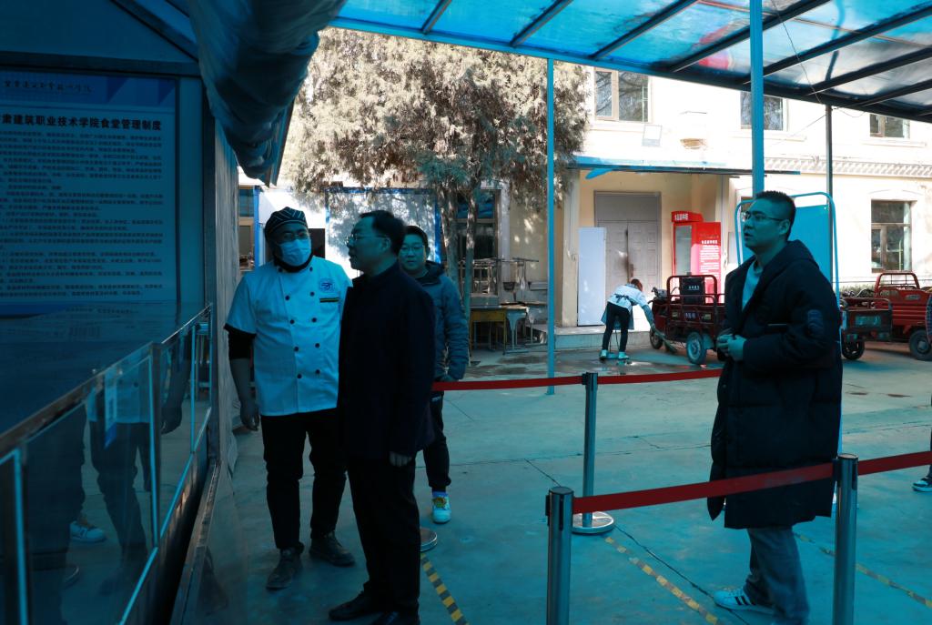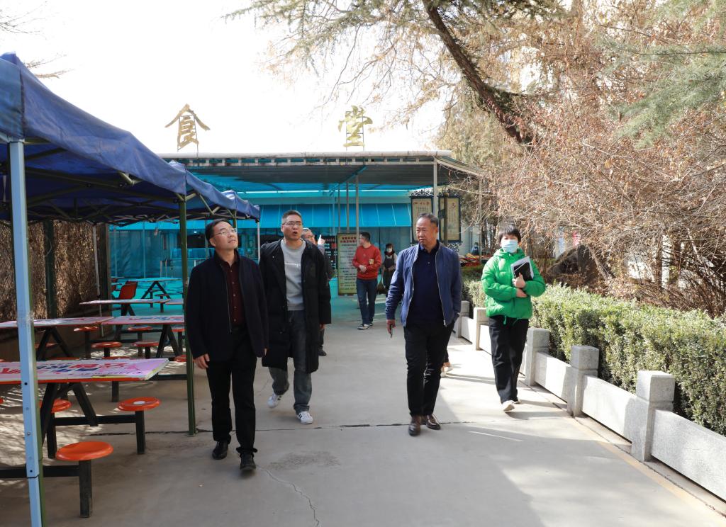 参会人员一同实地走访了校园内安全工作的重点区域,先后在学院食堂、学生宿舍、健康驿站、超市,了解了相关设施的使用情况和存在的安全隐患,高忠有强调要对有问题的设施及时排查;食堂工作人员和校园医护人员要做好卫生消杀,保障师生的食品安全和身体健康,确保新的学期师生的安全和教育教学工作秩序正常。