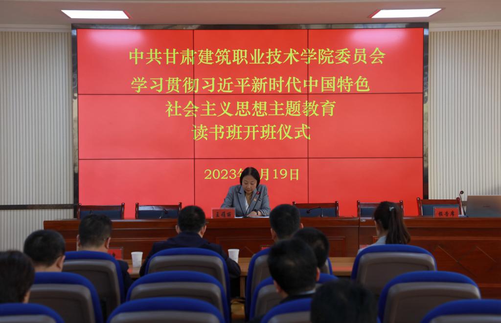 4月19日,甘肃建筑职业技术学院在学术报告厅举行学习贯彻习近平新时代中国特色社会主义思想主题教育读书班开班式。省委第七巡回指导组王德祥、石延峰,全省高校学习贯彻党的二十大暨全国两会精神师生巡讲省级示范活动第三宣讲团成员孙健、刘莹雪莅临学院,学院党委书记、院长王娟丽及领导班子成员,全体中层干部,各党总支、党支部书记和学生代表参加了开班仪式。