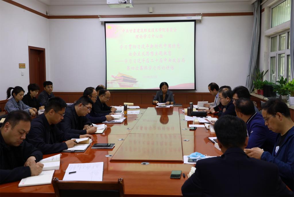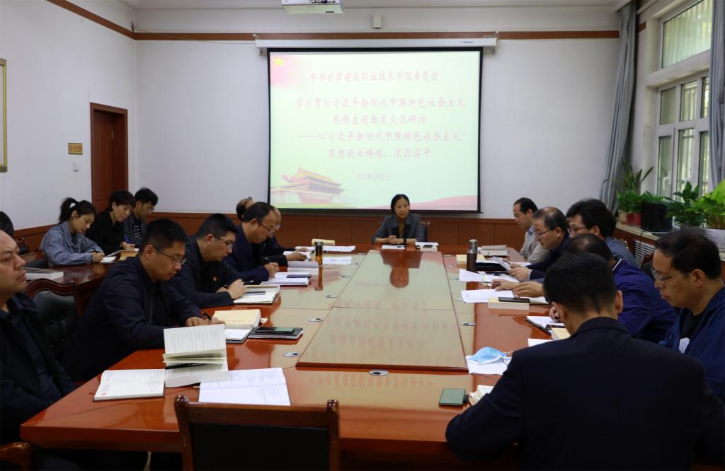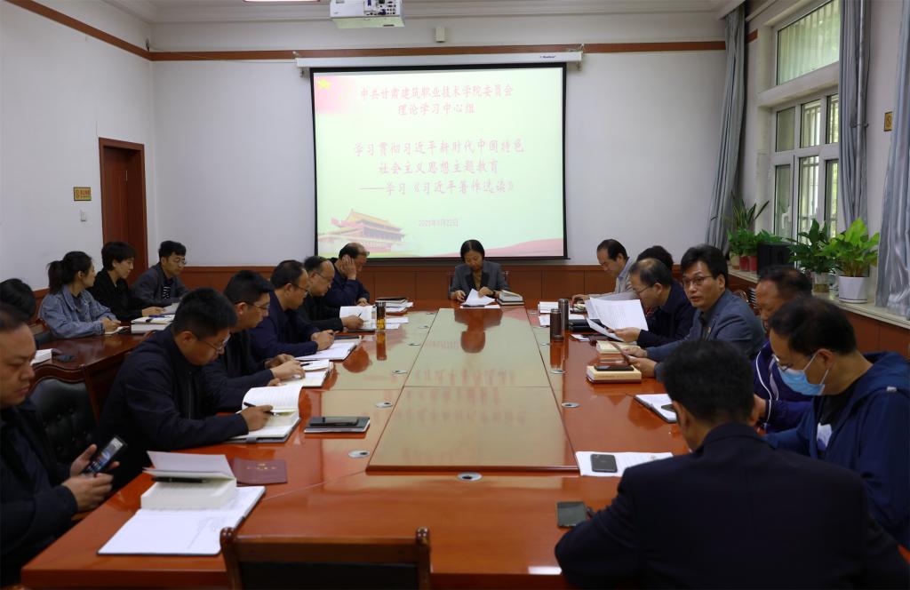 5月22日,甘肃建筑职业技术学院党委理论学习中心组开展学习贯彻习近平新时代中国特色社会主义思想主题教育研讨交流和学习。学院党委书记、院长王娟丽,领导班子成员及中心组全体成员参加。党委宣传统战部常务副部长李维敦主持。
