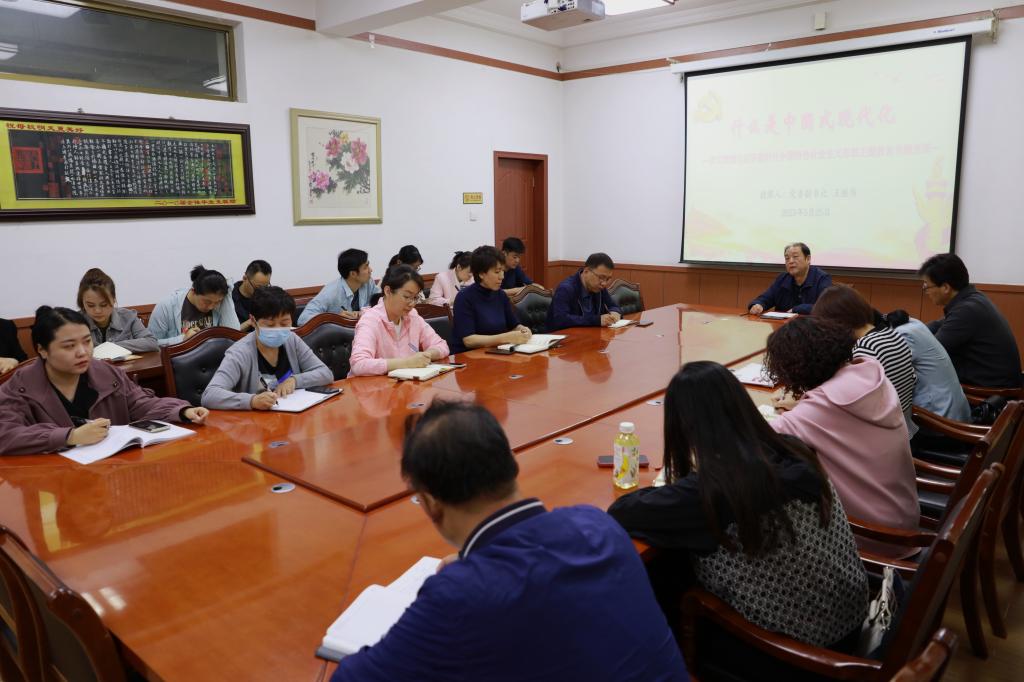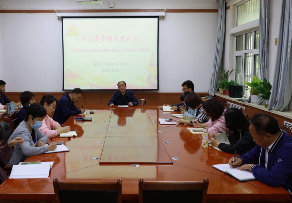 5月25日,学院党委副书记王继伟讲授学习贯彻习近平新时代中国特色社会主义思想主题教育专题党课《什么是中国式现代化》,机关第二党支部、建筑经济管理系全体党员聆听了党课。