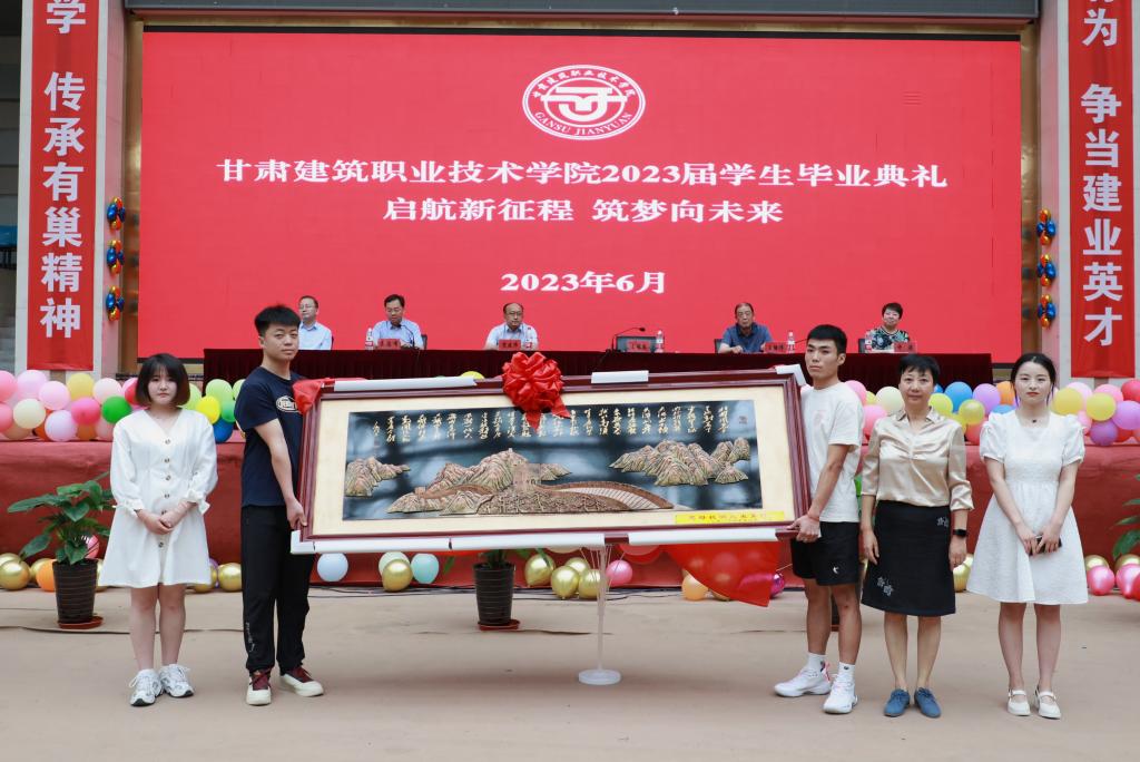 颁奖结束后,2023届毕业生代表向母校敬赠纪念品。