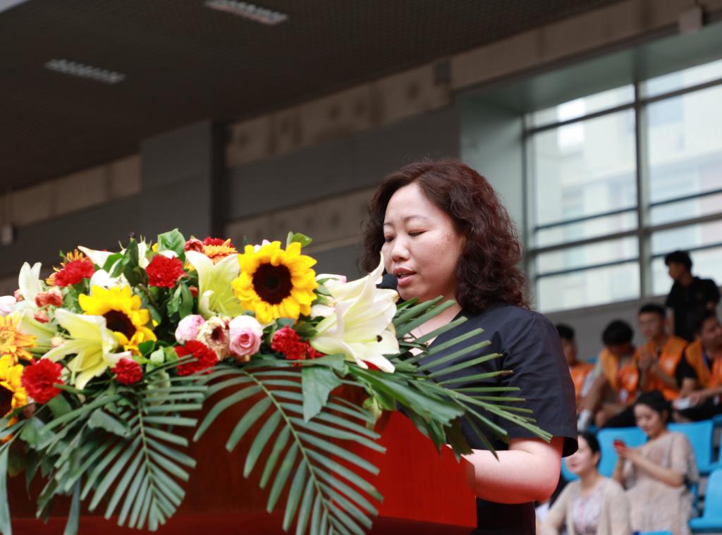 教师代表、建筑系辅导员刘丽华老师作发言时讲到,每年在毕业季的心情都是复杂的,既有收获成功的喜悦,也有挥之不去的离愁,她回顾了三年来和同学们的点点滴滴,谈了自己对于教师工作的理解和感悟,并希望各位同学们在今后都能带着热情与宽容去工作,带着严谨与勤奋去求学,带着正直与善良去做人,带着温暖与爱心去生活。