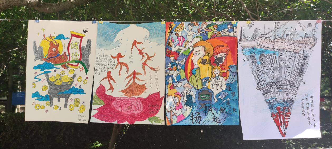 本次“诚信教育”活动的主题是“践行诚信 筑梦起航”。活动内容主要包括“诚信离我有多远”主题班会、“防范电信网络诈骗 共建平安和谐校园”法制宣讲、“诚信爱成长”手抄报比赛、“我诚信 我骄傲 我文明 我自豪”微视频作品征集大赛、“践行诚信 感恩资助”的诚信还贷教育讲座。主题班会的召开,在宣传各类政策的同时,也增强同学们的“诚信”意识,引导同学们从自身做起,从身边的每件小事做起;民警通过进校园现场发放防诈骗宣传手册,进宿舍手把手教学生如何使用“反诈APP”等形式,与学生面对面进行宣传教育,宣讲效果良好;“诚信爱成长”手抄报比赛,征集作品90多篇,评选22幅优秀作品。将同学们的作品在校园内进行展出宣传;“践行诚信 感恩资助”主题讲座让大家知道违规违约的严重性,明白失信可能造成的后果,极大的在思想上促使受助学生树立诚信观念,增强法律意识。