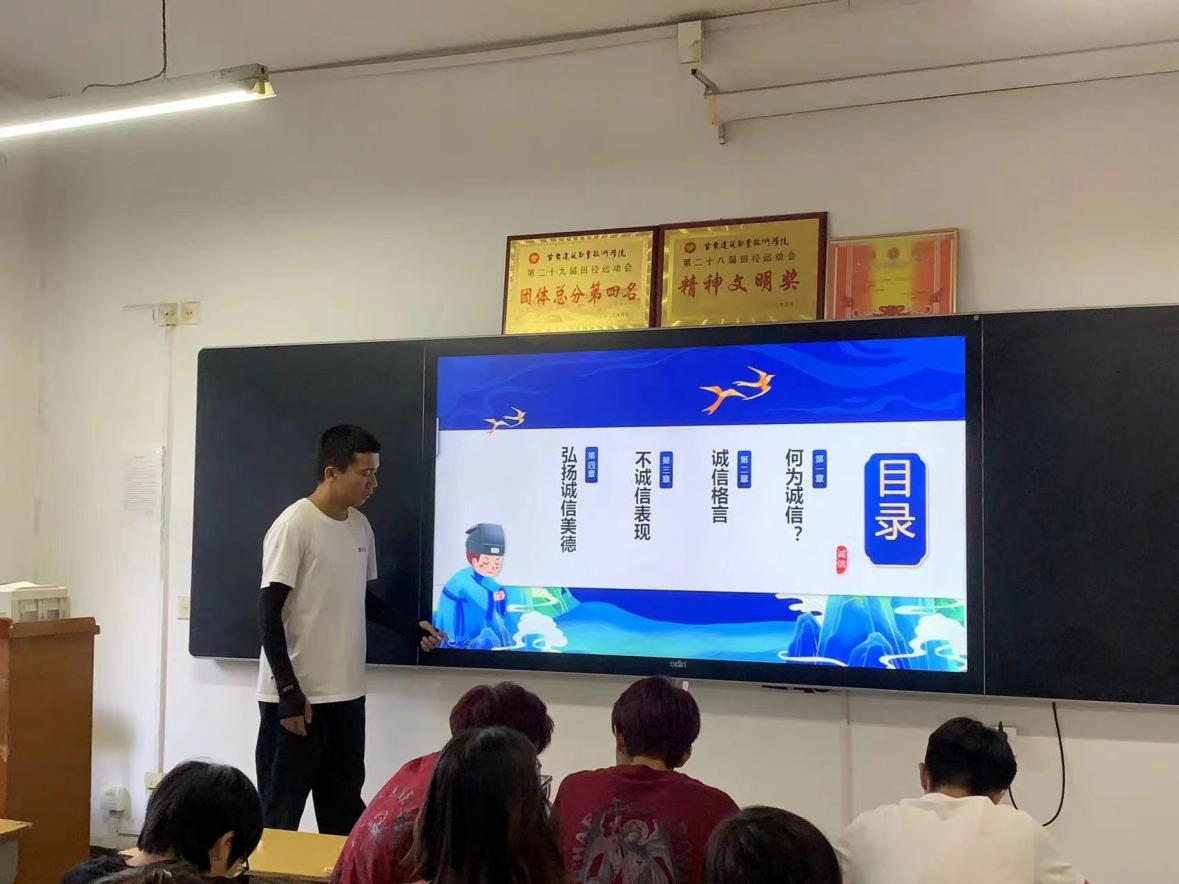 为全面落实党的二十大提出的“完善覆盖全学段学生资助体系”要求,加强对家庭经济困难学生的诚信教育、感恩教育和励志教育,增强学生诚信意识、风险意识和感恩意识,引导树立正确的消费观、成才观和价值观。学院2023年“诚信教育”主题宣传月活动顺利举办。校本部和康乐校区2021级和2022级的126个班级约7000多名在校学生参加了此次主题宣传月活动。