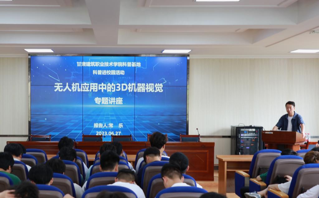 随后,测绘系无人机教研室主任常乐老师作《无人机应用中的3D机器视觉》专题科普讲座。