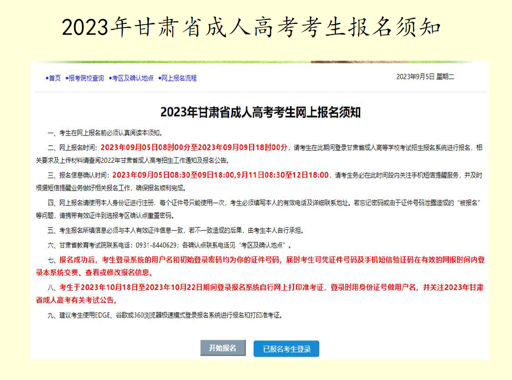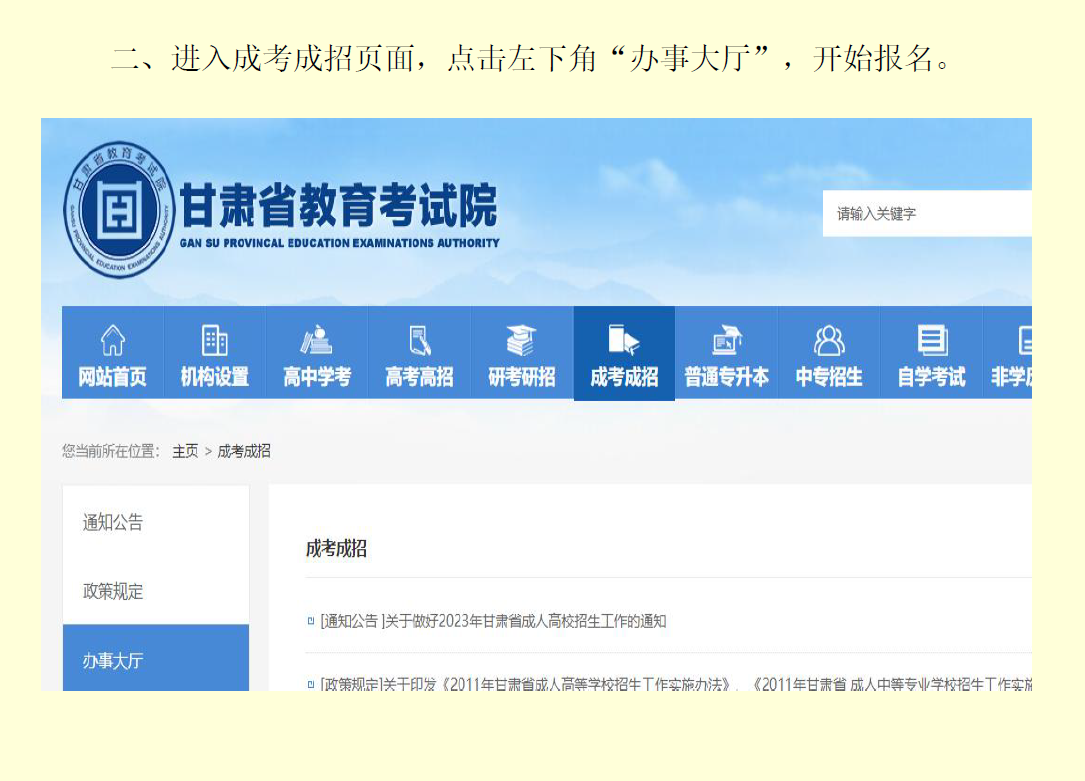 2023年甘肃省成人高考 网上报名流程