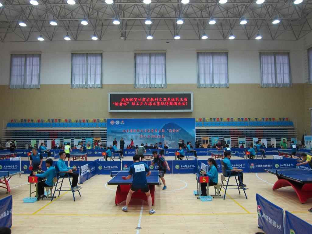3月24日,由甘肃省教科文卫工会主办,天水师范学院承办,读者出版集团有限公司协办的甘肃省教科文卫系统第三届“读者杯”职工乒乓球比赛在天水师范学院体育馆落幕。