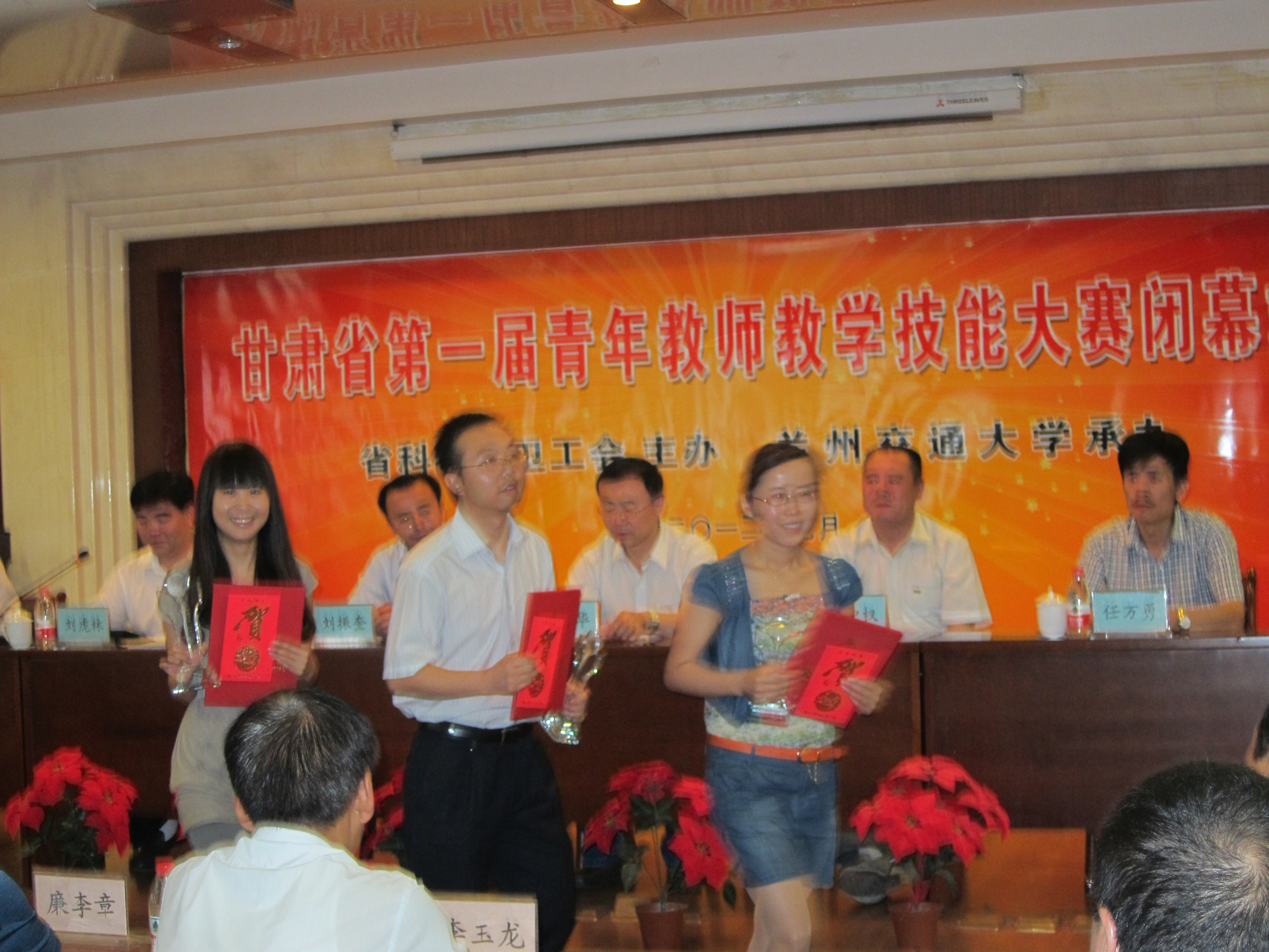 2012年7月5日至7月8日,在李社生副院长、王玉平主席的带领下,我院选派的三位青年教师参加了由甘肃省教科文卫工会举办的“甘肃省第一届青年教师教学技能大赛”。最终,张海燕老师获得工科二等奖;王瑛、郭胜红老师获得优秀奖;学院获得优秀组织奖的好成绩。