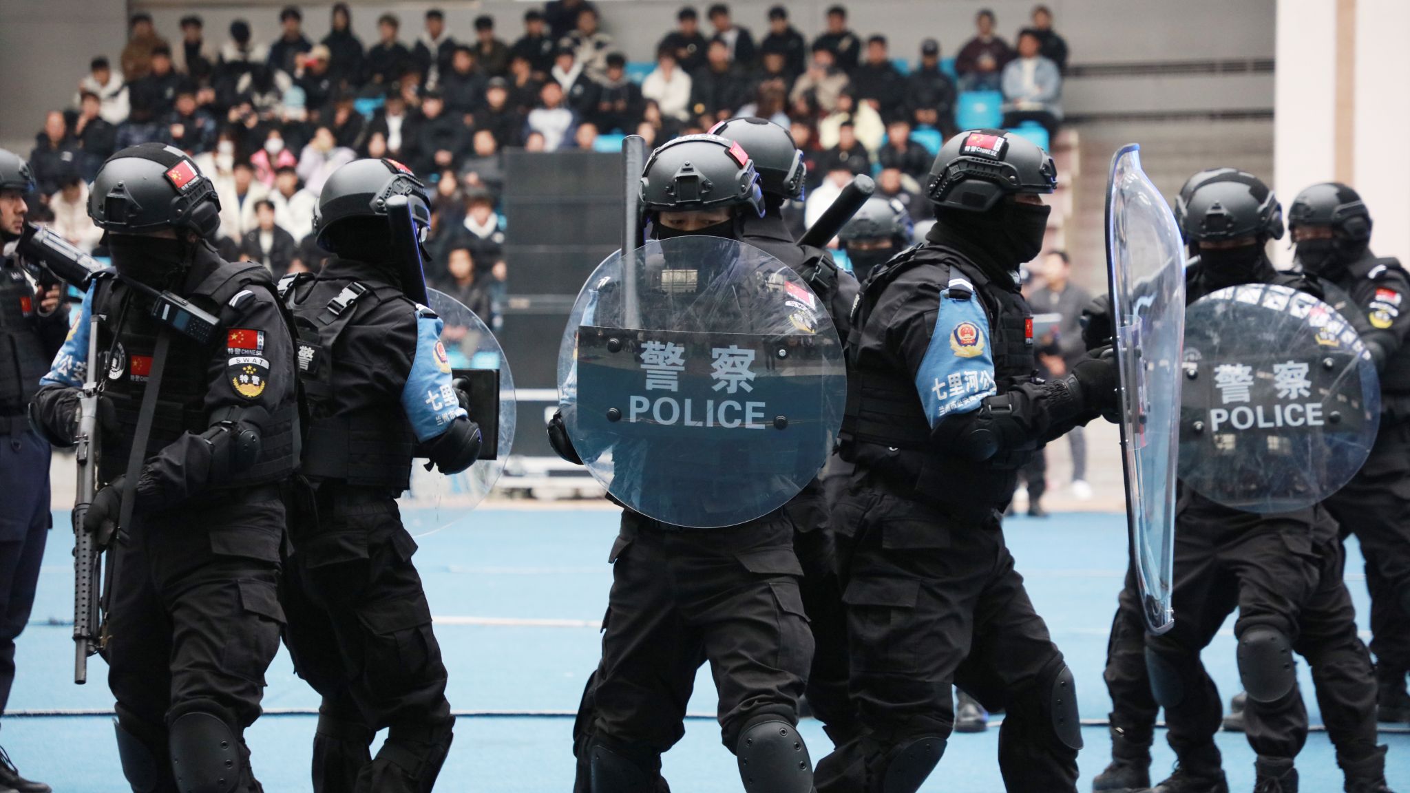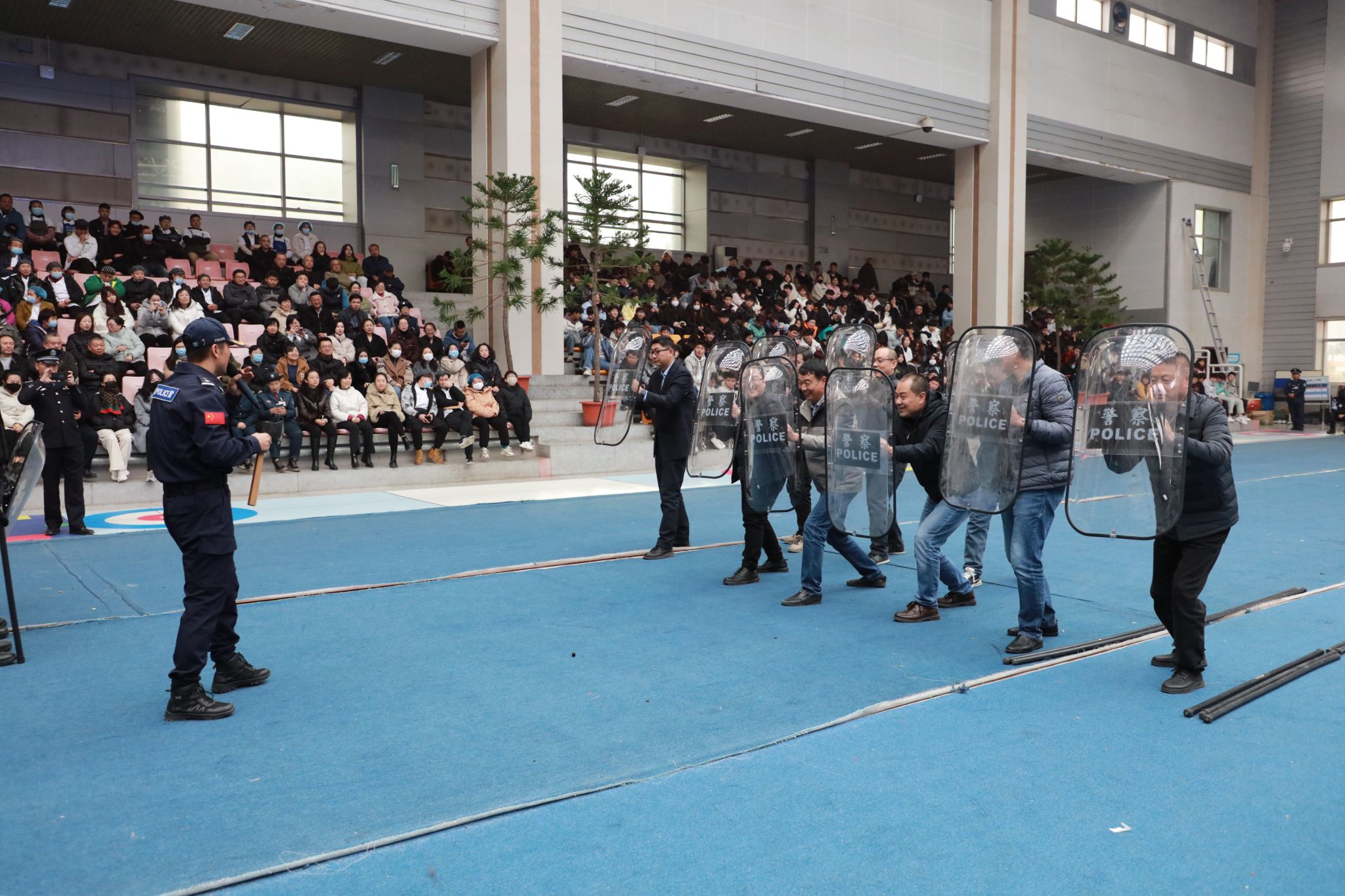 2024年11月29日,兰州市公安局七里河分局反恐特警大队在体育馆与我校联合开展了校园反恐防暴处突演练暨现场培训,共有1000余名师生参加。