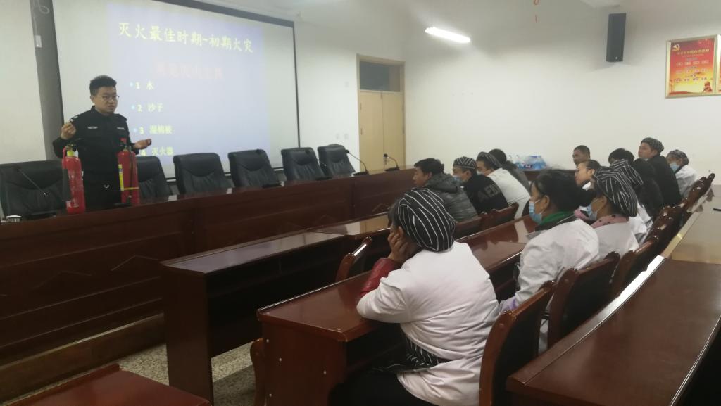 2020年11月17日为全面贯彻平安甘肃创建目标责任书,严格落实省市区应急管理文件精神与要求,结合我院消防安全隐患大排查实际情况,由学院保卫处、后勤处组织,对康乐校区食堂、保洁、保安等工作人员开展了以“降风险、明责任、促平安”为主题的消防安全知识讲座。
