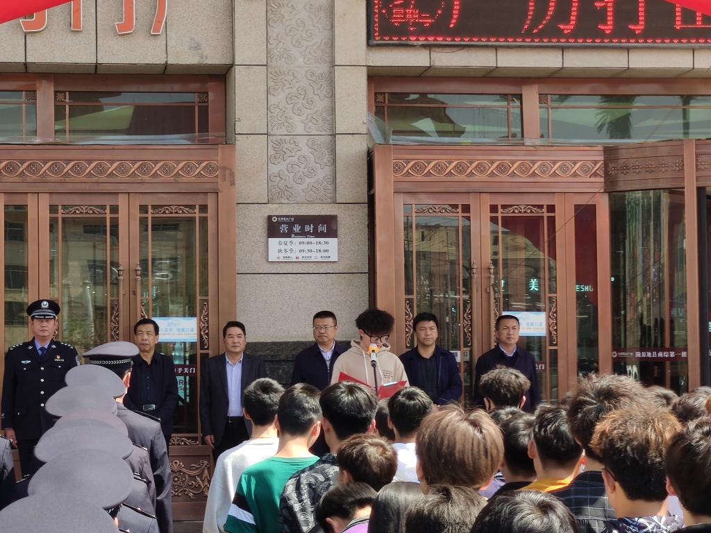 我院学生代表参加康乐县“全民防电诈,全社会反电诈”宣传月启动仪式 日期:2021-04-21 来源: 我院学生代表参加康乐县 “全民防电诈,全社会反电诈”集中宣传月启动仪式 为了提高学生的防范意识,针对泛滥成灾的电信诈骗现象,4月21日,组织我院学生代表参加康乐县“全民防电诈、全社会反电诈”宣传活动月启动仪式,活动启动仪式在良恒商业广场举行。 活动现场通过播放反电诈视频、发放宣传册、注册反诈APP、签名活动等方式,向学院师生普及电诈知识,并由我院学生代表王文博进行宣誓。