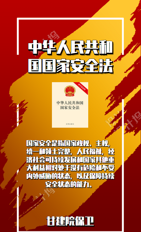 今年4月15日是第5个全民国家安全教育日。为深入学习贯彻习近平总书记关于总体国家安全观重要论述及中央、省委关于国家安全工作的决策部署,进一步增强全民国家安全意识,凝聚全民形成维护国家安全的强大合力,根据省教育厅《关于开展全省教育系统国家安全教育日宣传教育活动的通知》甘教安函[2020] 5号文件的要求,学院决定在全院开展2020年“4.15”全民国家安全教育日宣传教育活动。