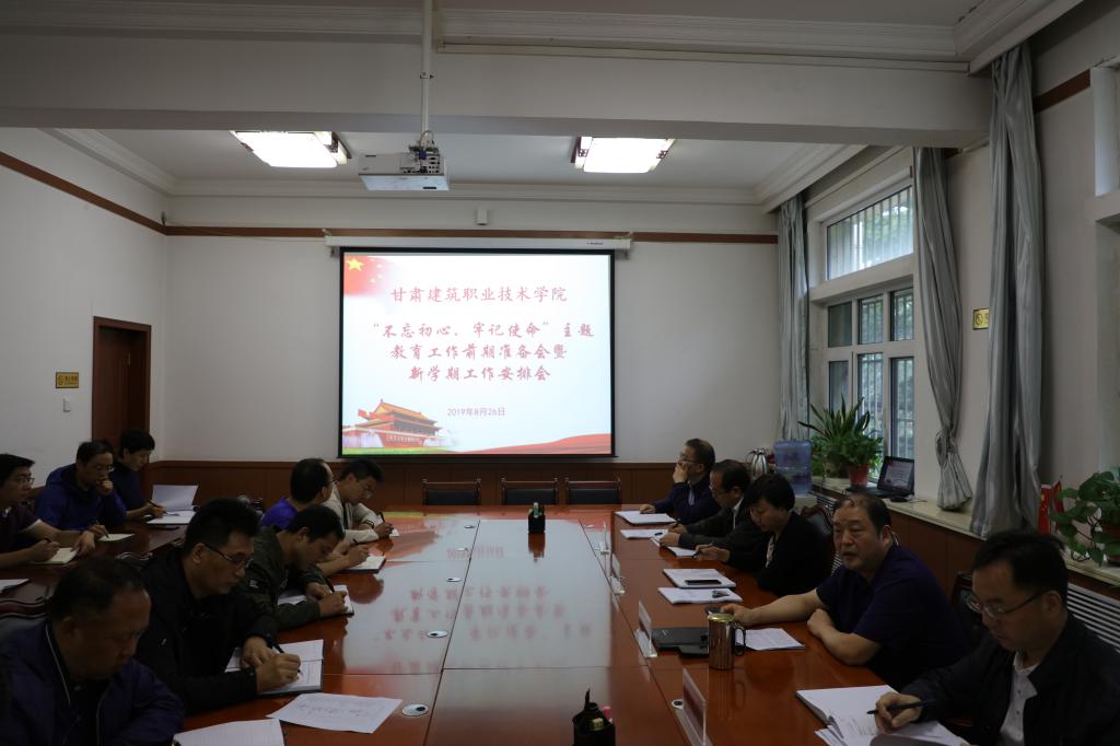 8月26日,甘肃建院党委理论中心组召开了“不忘初心、牢记使命”主题教育工作前期准备暨新学期工作安排会议。学院党委书记、院长王娟丽安排部署新学期工作,党委副书记王继伟带领中心组成员学习并主持会议。
