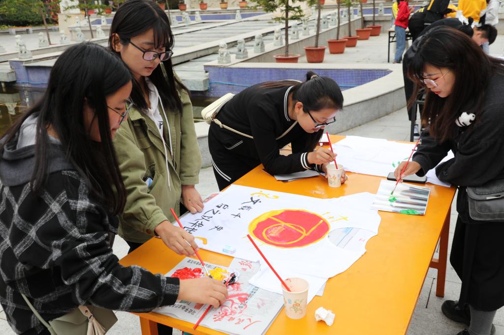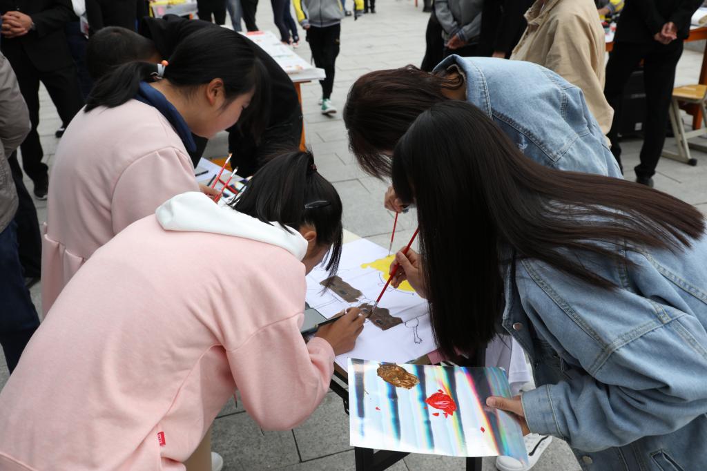 活动现场,学生们手握画笔,展开无限联想,描绘着祖国的壮丽蓝图,将五颜六色的颜料幻化成绚丽多彩的各种图腾,让自己天马行空的创意在白T上大展风采,通过彩笔描绘出爱国敬业、民族团结,学子们用一件件彩绘原创T恤表达对祖国的祝福,用一双巧手展现了艺术的魅力,为营造高雅校园生活及建设书香校园再添一笔锦绣!