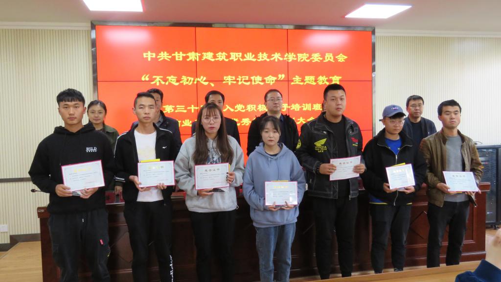 根据甘肃建筑职业技术学院“不忘初心、牢记使命”主题教育安排,10月22日中午,学院第35期入党积极分子结业典礼暨优秀学员表彰大会举行。学院组织人事处处长、院办主任张长颖参加了会议,各系党总支书记和党务干事以及全体学员参加了本次大会,交通工程系党总支书记于鹏祖主持大会。