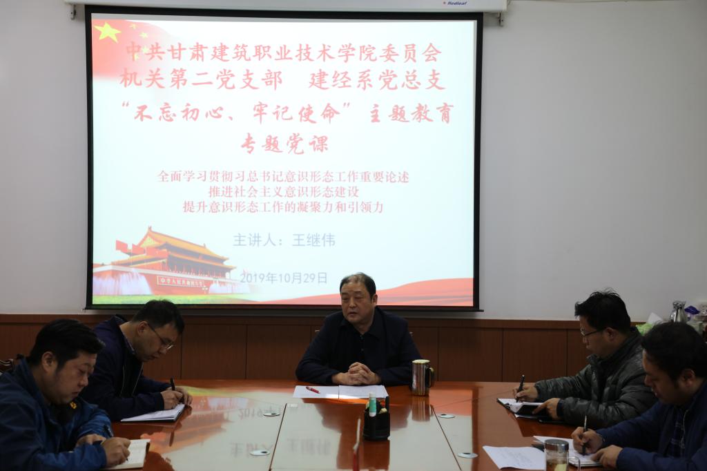 为什么意识形态工作是党的一项非常重要的工作?如何看待意识形态领域形势的复杂性?10月29日,学院党委副书记王继伟以“全面学习贯彻习近平总书记意识形态工作重要论述, 推进社会主义意识形态建设,提升意识形态工作的凝聚力和引领导力”为题,给建筑经济管理系和机关第二党支部的党员们上了一堂生动的党课。