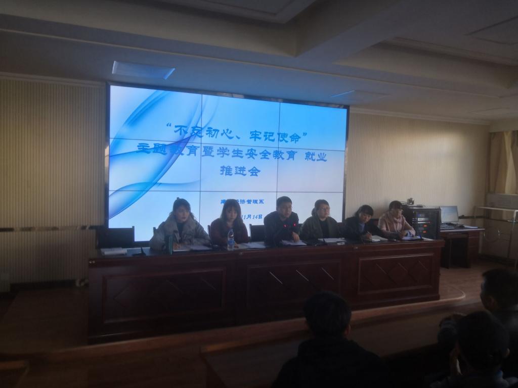为了进一步开展“不忘初心,牢记使命”主题教育,关注校园安全,细化各项学生工作措施,切实维护校园安全稳定,促进学生明确就业目标,持续推进就业工作。11月14日,建筑经济管理系在学院学术报告厅召开“不忘初心,牢记使命”主题教育暨学生安全教育、就业推进会,系党总支书记、相关负责老师及18、19部分学生参加了会议。