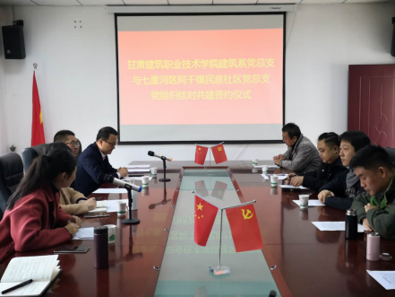 图片说明:11月5日,建筑系与七里河区阿干镇民意社区党支部举办了结对共建签约仪式。