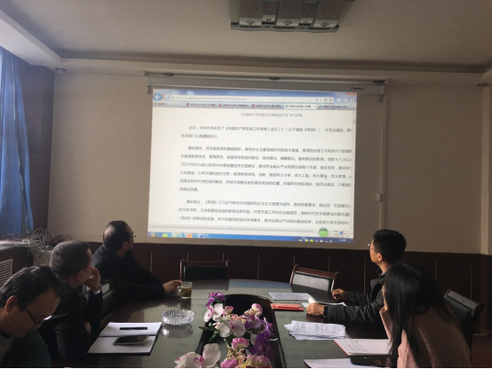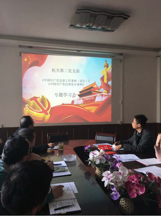 机关第二党支部在接到省委办公厅、省教育厅、学院党委分别下发的《关于认真学习宣传贯彻<中国共产党支部工作条例(试行)>的通知》文件后,及时做出了详细的学习安排并下发了通知。于2018年12月5日(星期三)下午15:10在1号教学楼三楼会议室组织支部党员共计15人集体逐字逐句的学习了《中国共产党支部工作条例(试行)》全文。