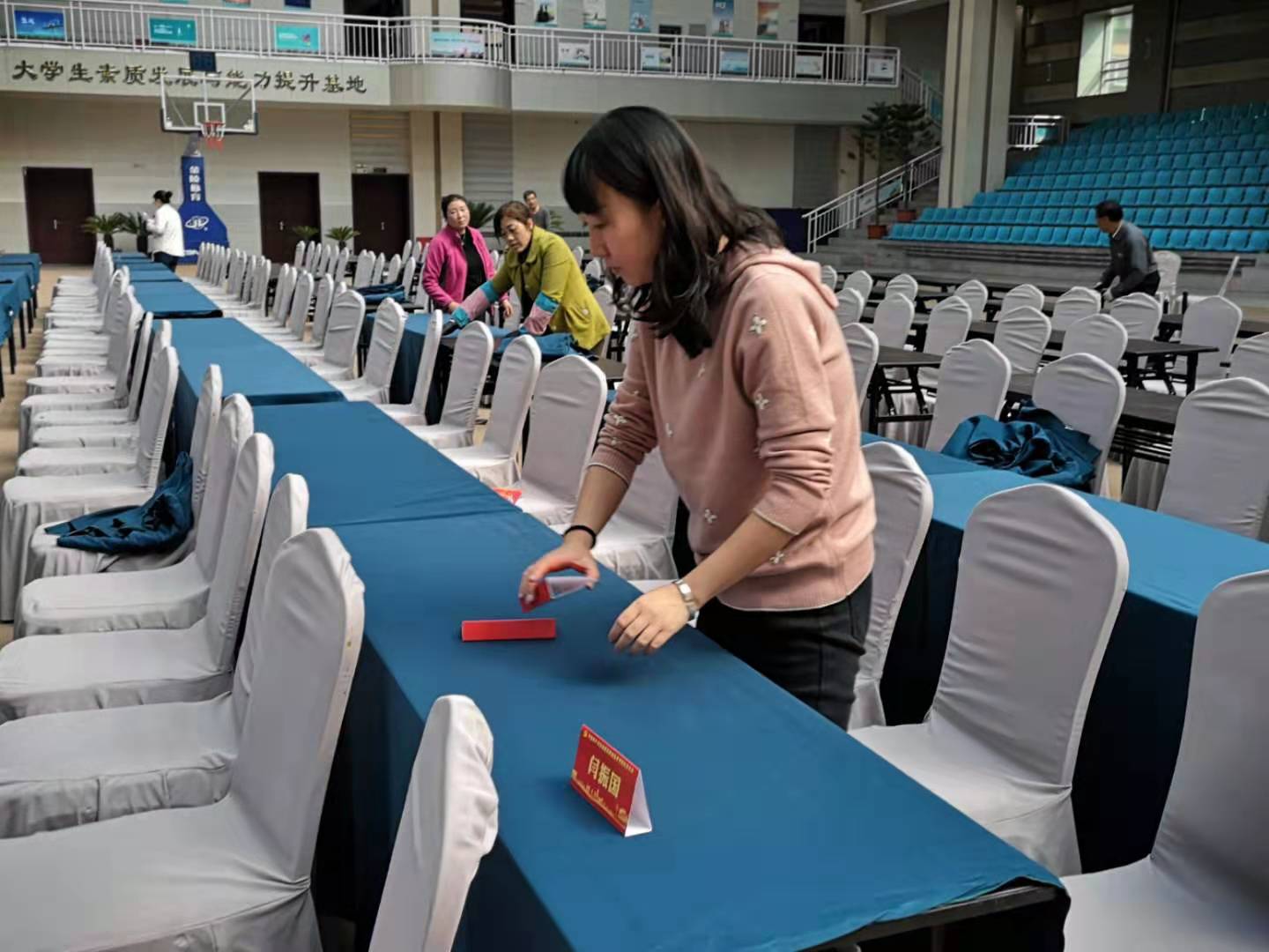 为了此次大会的顺利召开,学院各部门在大会前期就按照分工安排各尽其责,装订资料、会场布置、条幅制作,忙得不亦乐乎。与此同时,相关领导多次查看会场及各环节准备情况和进展程度。